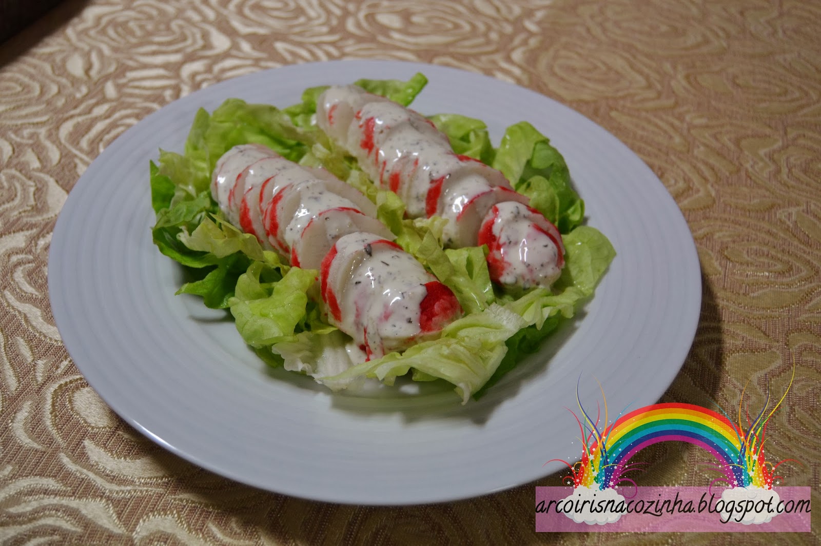 Há dias em que chegamos a casa cansados e com fome... mas, se comemos o que nos apetece e nas quantidades que nos apetece, acabaremos por não jantar. É ou não verdade? Acontece-me imensas vezes... e para combater isso resolvi fazer uma saladinha bem simples e deliciosa que comi antes da refeição e que me saciou o apetite até então. Usei delícias do mar em forma de lagosta da Pescanova, que basta deixar a descongelar e utilizar, sem qualquer necessidade de descongelar e que, convínhamos, dão um aspecto mais chique à salada!
