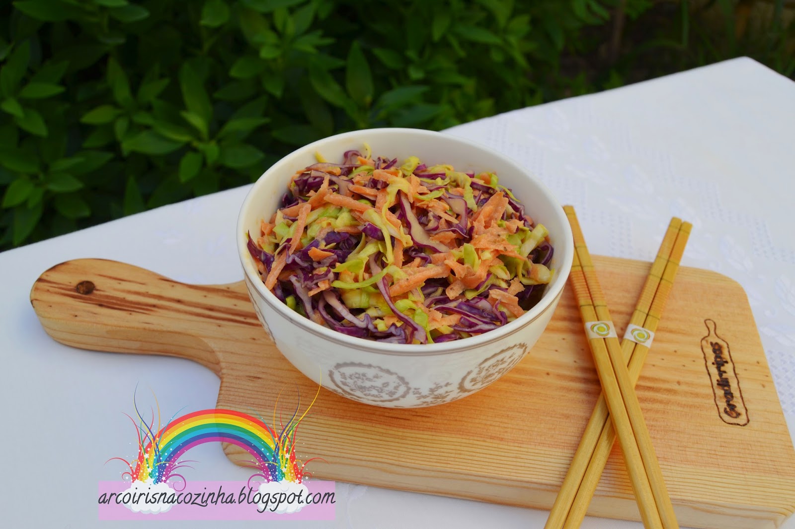 É uma salada fresca, saudável, crocante e muito agradável que acompanha na perfeição pratos de carne e peixe, ficando divinal com carnes grelhadas e churrasco. Muito simples de confeccionar também e cheia de nutrientes... só bons motivos para experimentar!