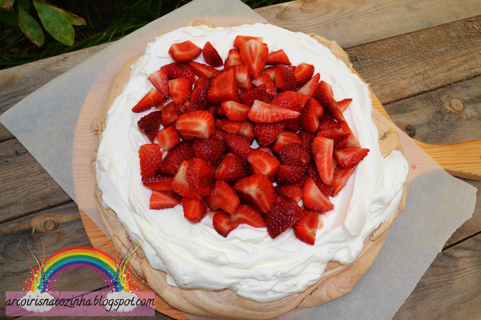 Também adoro pavlova e ainda na semana passada fiz uma, também com morangos. A tua ficou mais bonita!