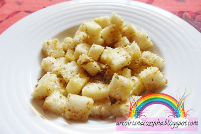1. Retire a casca e as pevides à abóbora e corte-a em cubos.