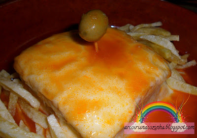 Finalmente consegui que todos concordassem e, para um serão de sábado à tarde, fez-se uma bela francesinha, não fosse esta um prato típico do Porto e não estivéssemos nós na cidade Invicta! Este molho é delicioso, posso garantir! Combinei a receita da nossa querida Neuza Costa, do fórum SaborIntenso, com algumas alterações que achei por bem introduzir ou retirar, consoante o caso. Aqui fica a minha versão da receita!