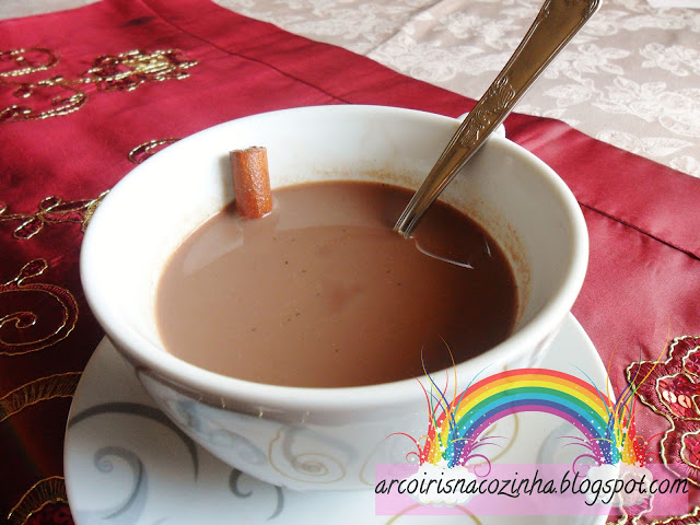 2. Entretanto leve ao lume o leite, o pau de canela e o chocolate em pó e misture bem.