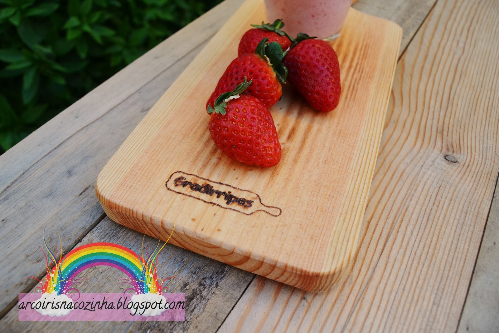 11. Numa taça adicione a água quente à compota de frutos vermelhos e misture. Pincele este preparado sobre os morangos para que fiquem brilhantes.