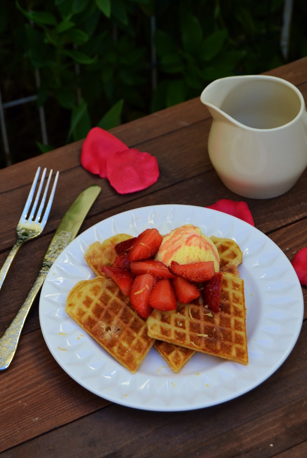 Waffles com Morangos Marinados e Gelado
