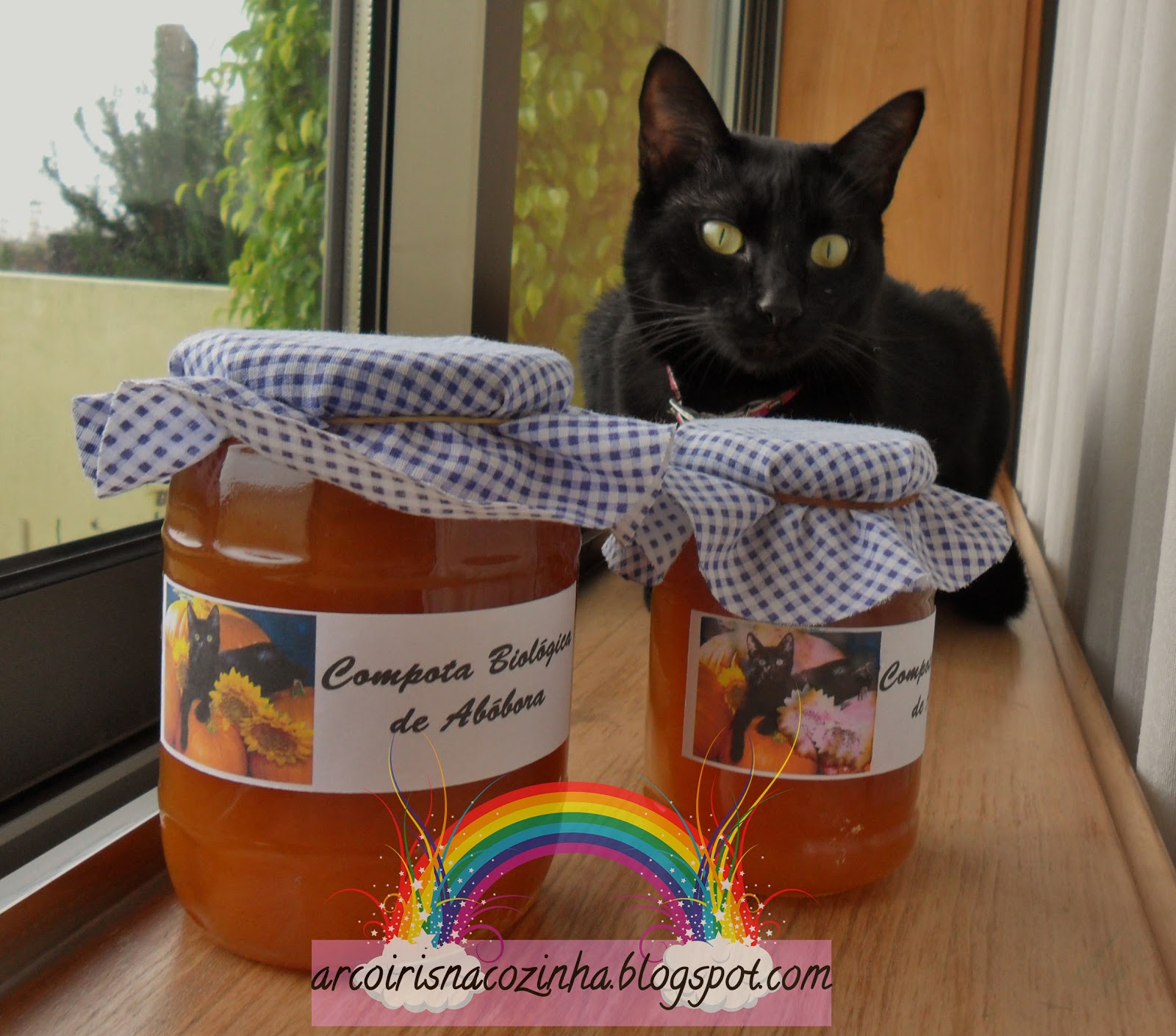 Além de que podem fazer etiquetas giríssimas e cortar pedaços de pano para embelezar os vossos fracos... fica aqui um link com algumas sugestão lindíssimas de etiquetas para o Natal! Eu fiz umas no PowerPoint usando uma imagem de um gato preto em cima das abóboras, como podem ver abaixo.