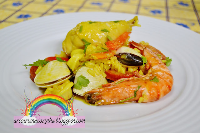 Esta é uma receita diferente, mas muito saborosa, que adoro preparar e saborear... a paellera permite que o arroz cozinhe uniformemente e, tradicionalmente, deve deixar-se que o arroz agarre ao fundo da paellera, não mexendo muito, para que possua um leve sabor caramelizado. Pessoalmente não gosto, mas mantenho a tradição no sentido de que esta paella foi feita em forno de lenha... espero que compense!