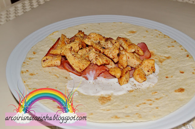 Adoro wraps... conheci pela primeira vez as suas delícias em França talvez, com as sandes árabes, ou com os wraps da minha avó materna, feitos com frango ou peru, pimento, cebola e tomate... é engraçado como a comida nos proporciona momentos tão bons, que ficam marcados na nossa memória. Podemos não nos lembrar do que fizemos por vezes, mas é raro não nos lembrarmos das coisas boas que provamos, do seu sabor e textura.