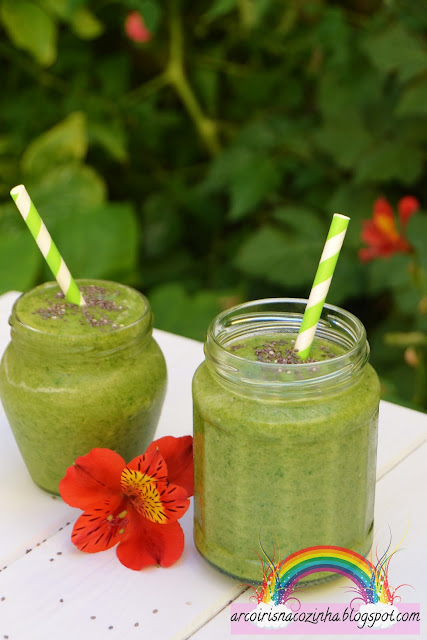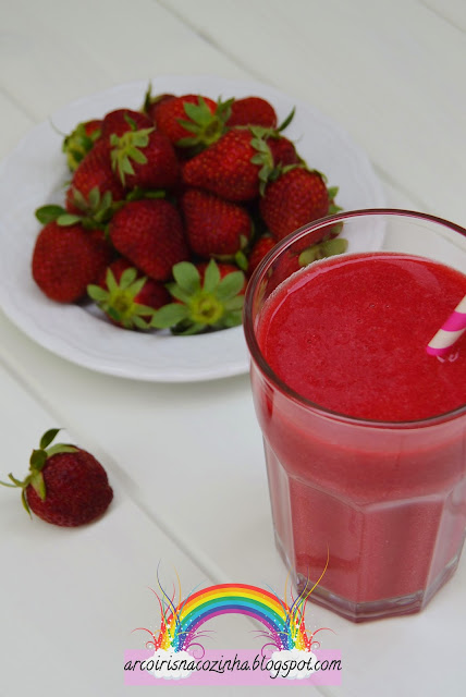 Nesta minha primeira experiência aproveitei morangos e kiwis bem maduros que tinha na fruteira, e adicionei também hortelã para tornar o sumo mais refrescante, e ainda sementes de linhaça em pó por conterem muita fibra, que é ótima para saciar o organismo. Recomendo que utilizem sempre que possível a linhaça em pó, em detrimento das sementes porque a casca das mesmas é de difícil digestão, e torna-se mais fácil para o organismo aproveitar todos os nutrientes da linhaça se esta estiver em pó.